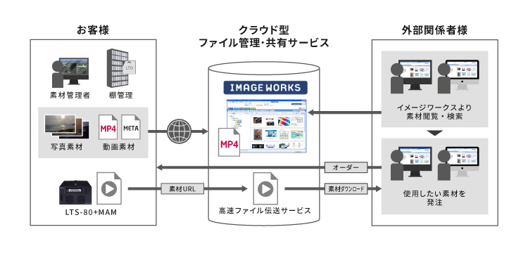 LTO-9ドライブを搭載した高速アーカイブシステムLTS-90を使用し、4K時代に求められる大容量のアーカイブやバックアップをサポートします。また、アーカイブデータを管理するソフトウエア「LTS-MAM」と組み合わせることで、社内での共有・検索が簡単にできます。