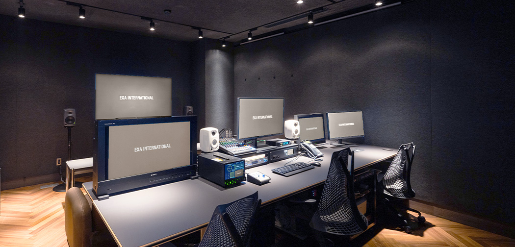4K/HD/SDの映像制作に対応したノンリニア編集室です。 様々なフレームレートに対応した、マスターモニターや波形モニターなどのモニタリング環境もご用意。ストレスを感じることなくプレビューすることが可能です。