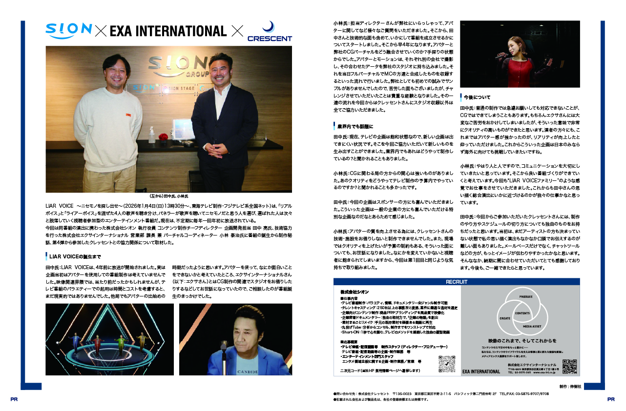 「LIAR VOICE ~ニセモノを探し出せ~」(2026年1月4日(日)放送/東海テレビ制作・フジテレビ系全国ネット)に関するインタビュー記事が、月刊CGWORLDに掲載されました。